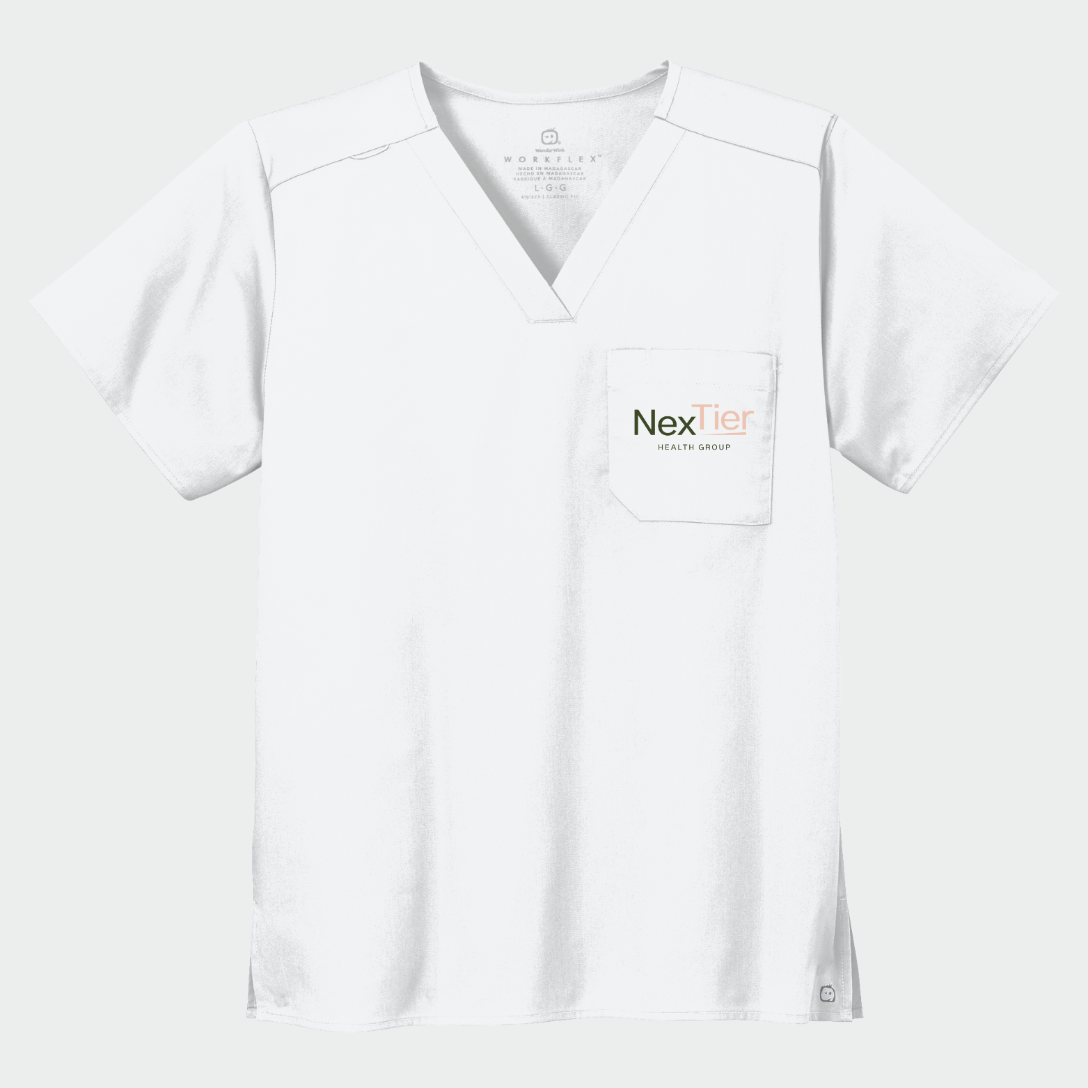Printed on: Wink® Unisex WorkFlex Chest Pocket V-Neck Top
