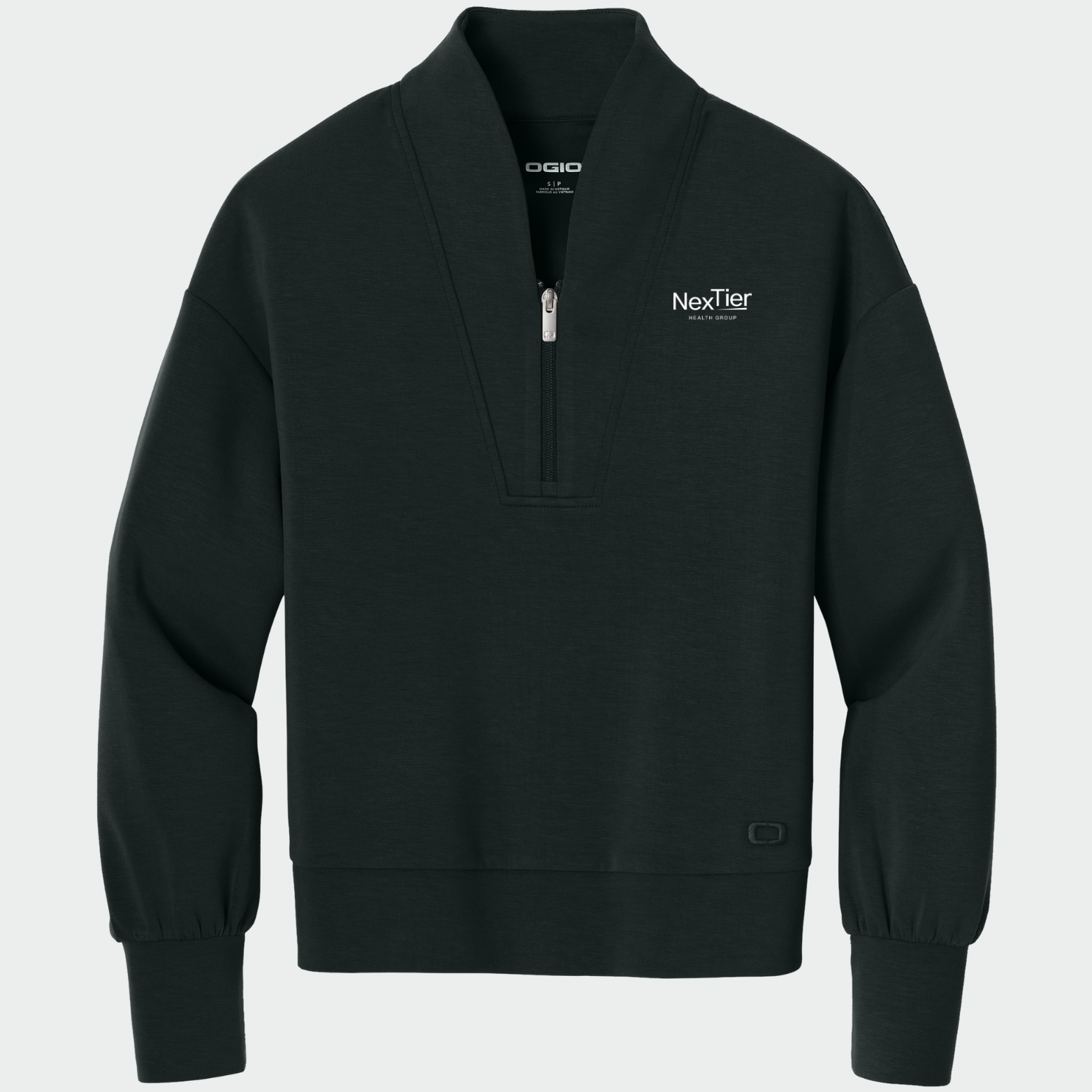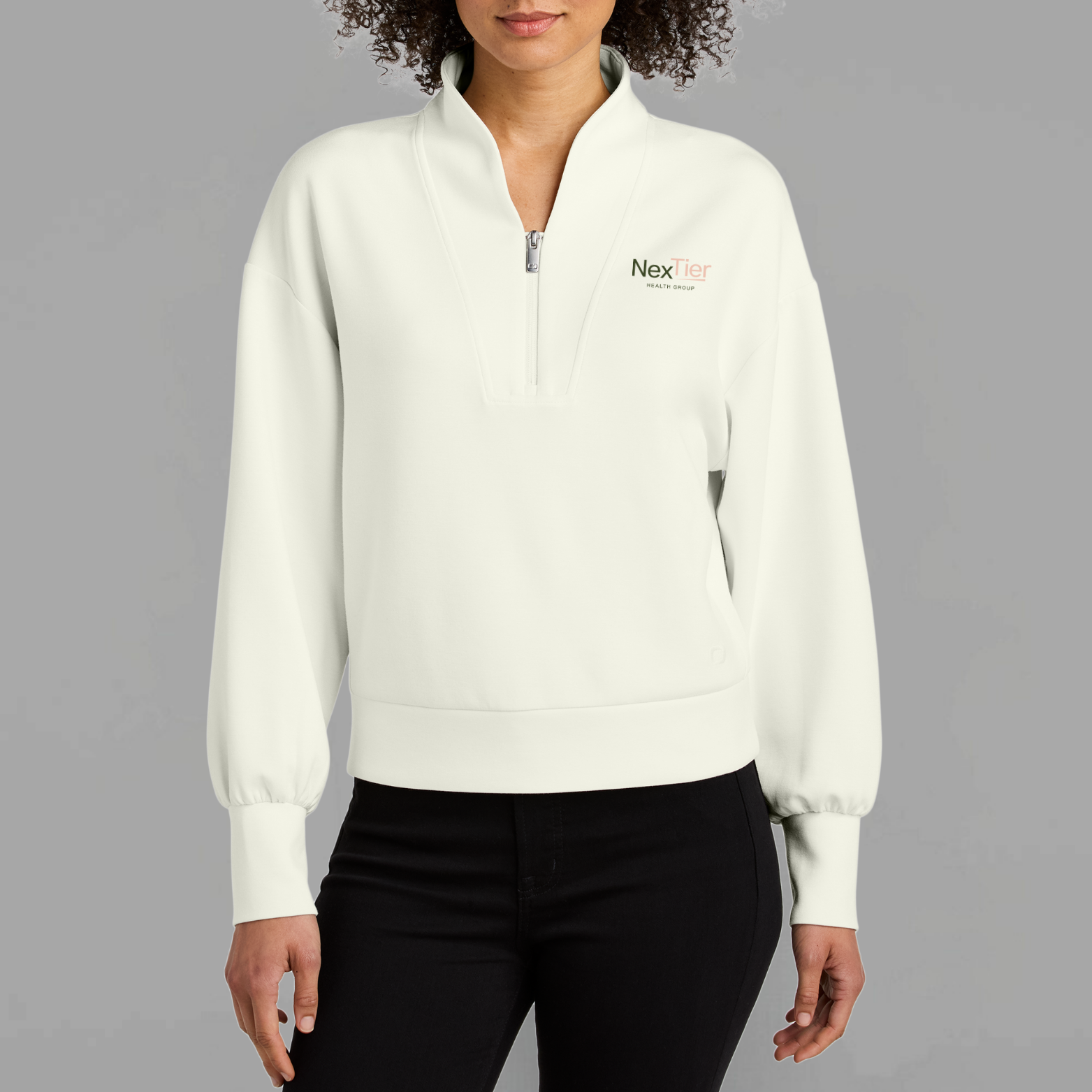 Made from a premium double-knit fleece blend, it features built-in stretch for ease of movement and a soft interior that feels comfortable without overheating. The embroidered NexTier logo at the left chest adds subtle, intentional branding—clean, modern, and aligned with the compassionate, personalized care NexTier is known for.