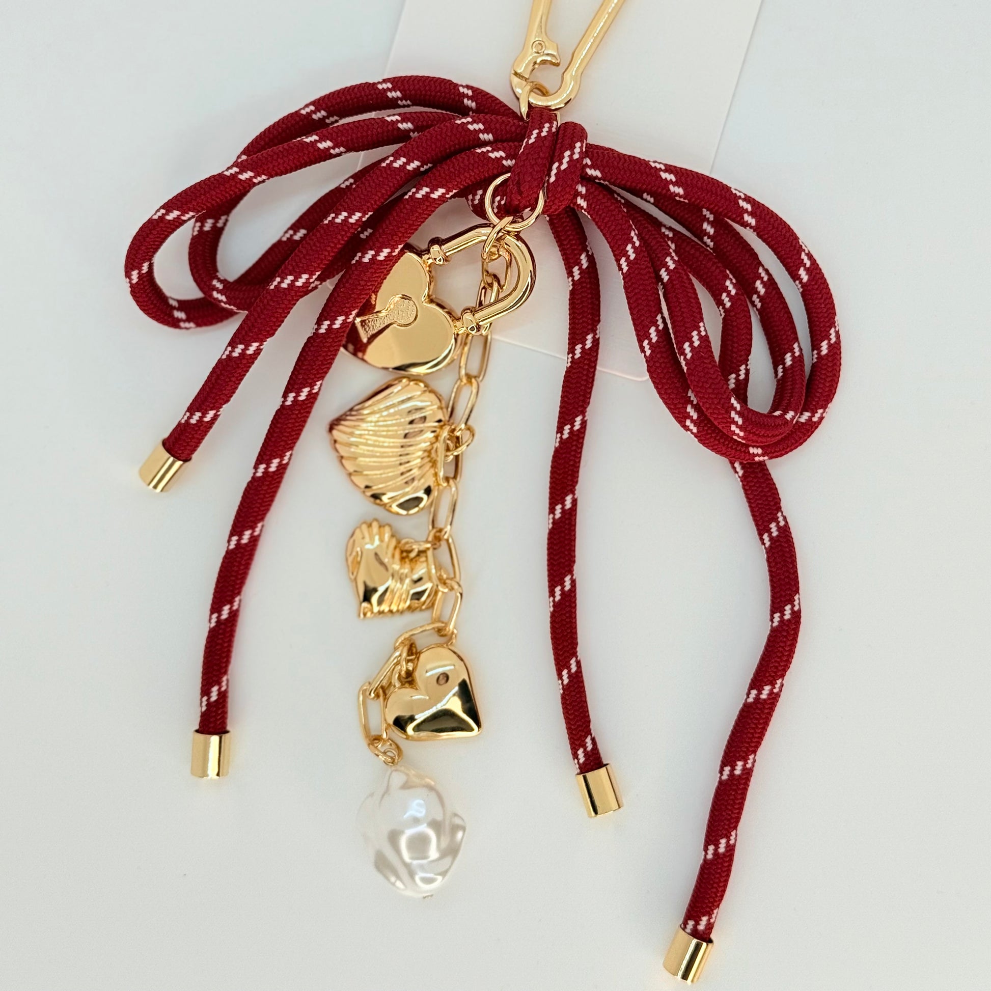 Maroon Heartlock Bow-Tied Bag Charm